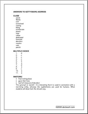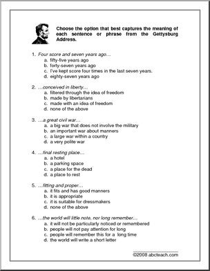 Worksheets: Gettysburg Address (upper/middle/high)
