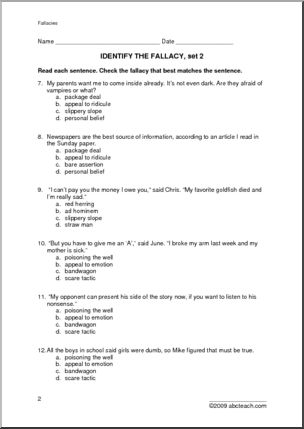 Worksheets: Identify Fallacies (set 2)