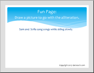 A small, colorful teaching packet introducing the concept of alliterations.