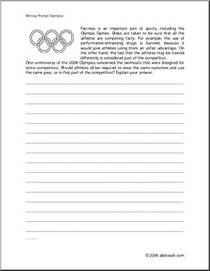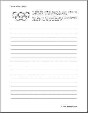 The set of our seven writing prompts on the subject of the Olympics. Descriptive, narrative, and persuasive writing skills.