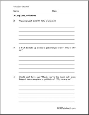 Part of the abcteach character-education series, which introduces children to challenging life skills decisions and asks them, “What would you do if this happened to you?” This one addresses patience and lying to get ahead.
