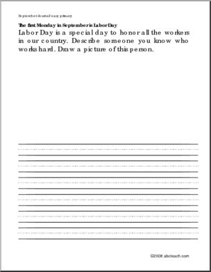 19 simple prompts for holidays and other special occasions in September, with wide divided lines to write and space to draw.
