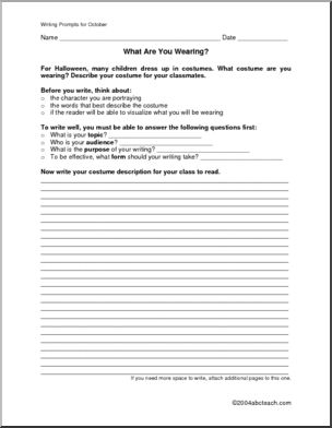 Improve writing skills with these October-themed writing prompts, focusing on the topic, audience, purpose, and form of writing.
