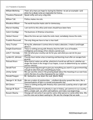 44 quotes from American presidents form the basis for writing prompts that require students to use their skills of reflection, research, and writing.