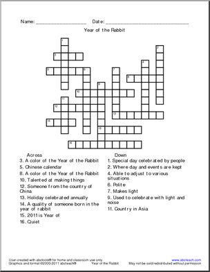 Use this ‘Vocabulary: Year of the Rabbit Activity Set (hard)’ printable worksheet in the classroom or at home. Your students will love this ‘Vocabulary: Year of the Rabbit Activity Set (hard)’. A set of three vocabulary building activities of a word list related to the Chinese New Year and the Year of the Rabbit. Includes […]