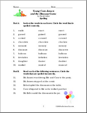 Use this ‘Book: Young Cam Jansen and the Dinosaur Game (elem)’ printable worksheet in the classroom or at home. Your students will love this ‘Book: Young Cam Jansen and the Dinosaur Game (elem)’. Word search, word unscramble, cloze exercise, spelling work, story sequencing, and short answer comprehension to review David Adler’s story of a birthday […]